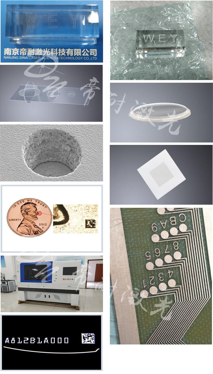 主要應(yīng)用于超精細(xì)微加工,如超薄液晶玻璃、各種高檔酒瓶等材料表面及內(nèi)部打標(biāo)。